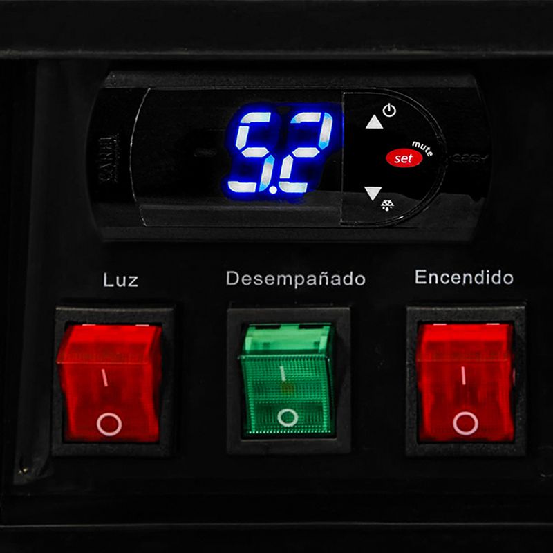 Temperatura de trabajo de 2°C a 8°C, enfriamiento por sistema de frío forzado, compresor EMBRACO 1/2 HP, doble vidrio templado 4 mm en todas sus caras, controlador digital CAREL, botón de desempañamiento para una mejor exhibición, sistema de evaporación de agua automático, 3 repisas regulables, luces LED en todas las área de exhibición, base en acero inoxidable 201, puertas posteriores deslizables, ruedas para un mejor desplazamiento, gas refrigerante ecológico R290 y tuberías de cobre para una larga vida útil.